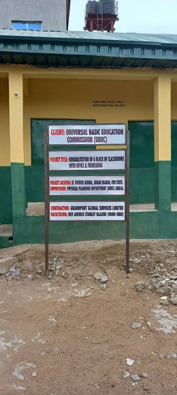 2. Construction of a block of ECD Pilot Centre at Oluyole – OLGC Primary School, Olurinde