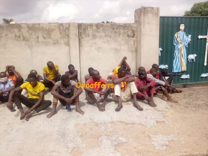A source revealed that Some of them were caught while alighting from an articulated vehicle around Federal Government college area of Ogbomoso while others were caught along the express road