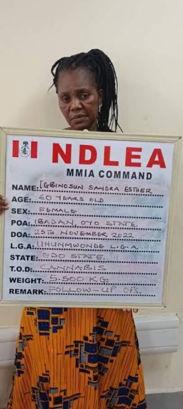 “The grandma, Mrs Ibinosun Sandra Esther, was arrested in Ibadan, Oyo State in a follow-up operation following the seizure of a 5.5kg Loud variant of cannabis imported into the country from South Africa.