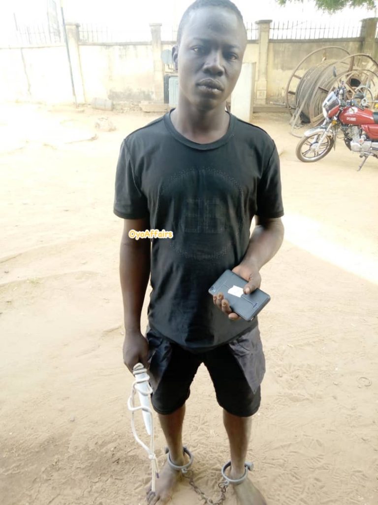In a similar vein, a petty thief has been apprehended by the operatives of Oyo Amotekun last night while dispossessing an unsuspecting citizen of his mobile phone using a knife to threaten the victim.