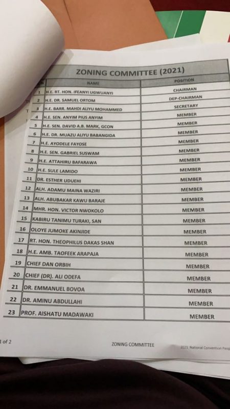 The people’s democratic party also named members of the zoning committee. The list has serving and former governors, Senators, members of the House of Reps, serving and former as well as serving and former party leaders were given the opportunity to serve.