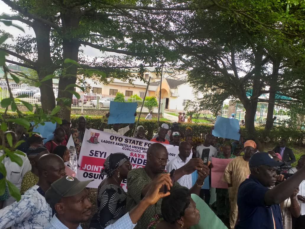 While addressing the protesters, the Commissioner for Education in Oyo state, Prof. Daud Sangodoyin, stated that appropriate steps are being taken on the issue of LAUTECH and also, the dialogue process is underway to address the institution’s issue which will lead to concrete resolution.