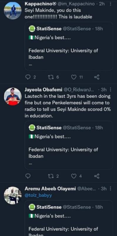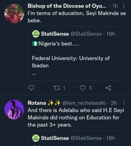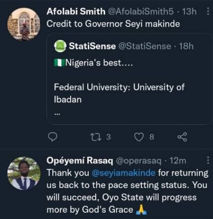 The great development which was revealed in a tweet by frontline data, tech and statistics organisation, Statisense has generated lots of reactions as people shower encomium on the ‘Seyi Makinde-led administration of Oyo State.