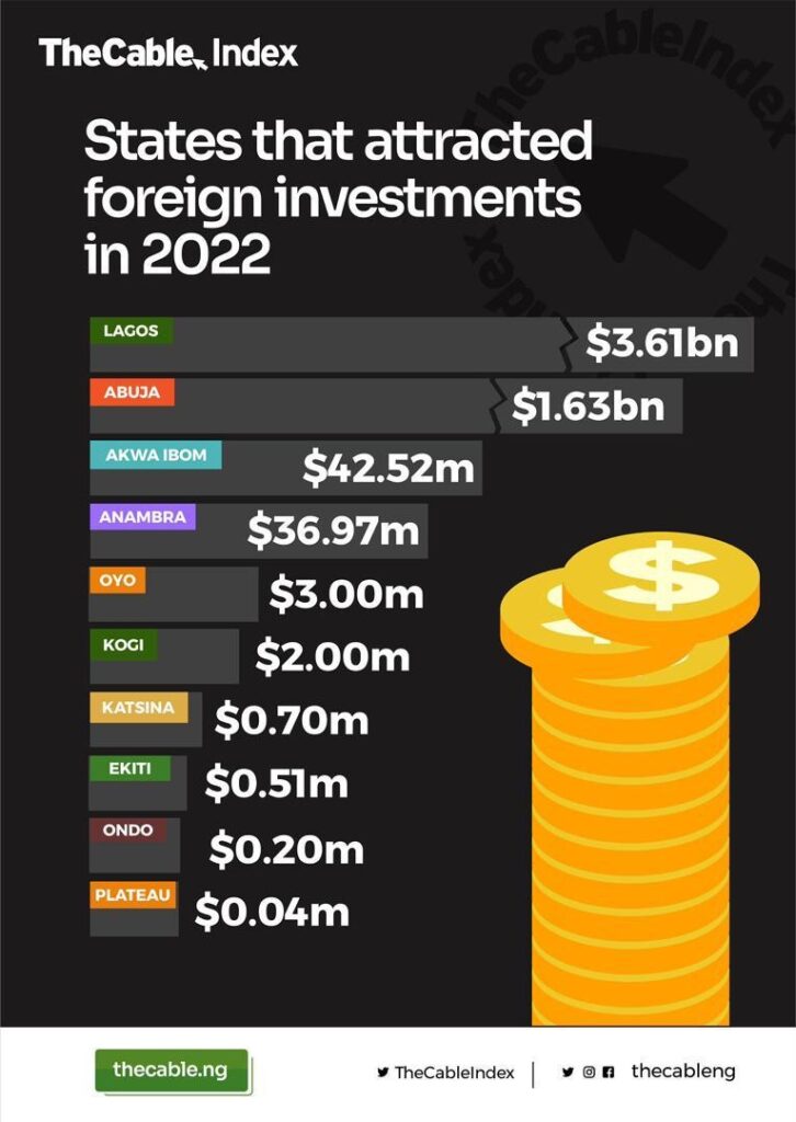 The state in a data released by the Cable Index earlier today was said to have derived about 3 million US dollars from investors who have invested so much in the state economy.