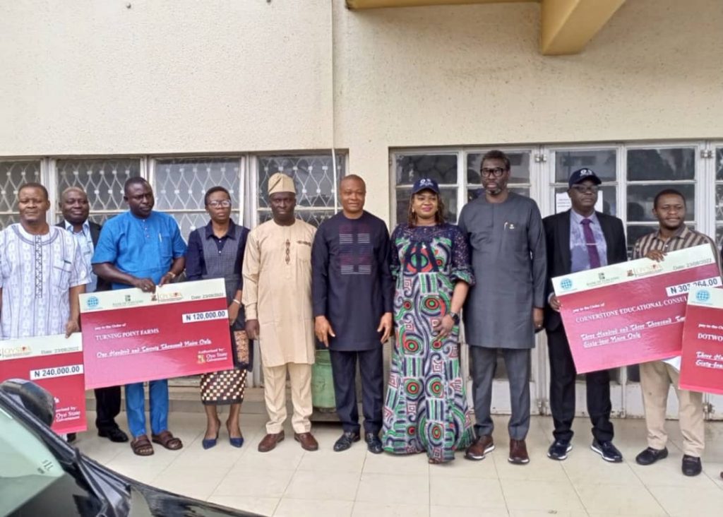 Presenting dummy cheques to some first batch beneficiaries, the Commissioner for Budget and Planning, Prof. Musbau Babatunde; his finance counterpart, Mr Akinola Ojo; and Director-General OYSIPA, Ms Lola Olutola, explained that Oyo was the first state in Nigeria to disburse the fund.