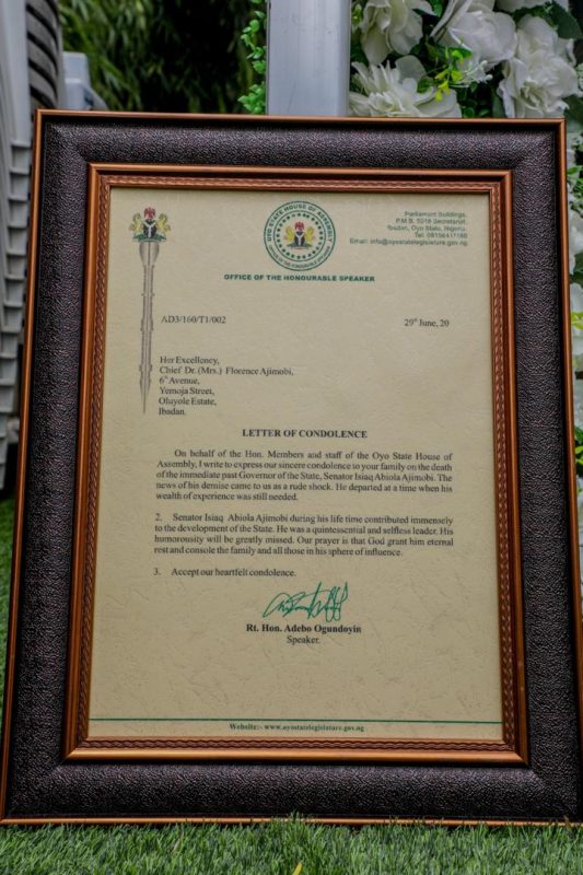 “The Honourable Members, Staff of the Oyo State House of Assembly sympathize with Her Excellency, Mrs Florence Ajimobi, the Children, entire Ajimobi family of Oja’ba in Ibadan, Political allies, Friends and the entire People of Oyo State on this irreparable loss.