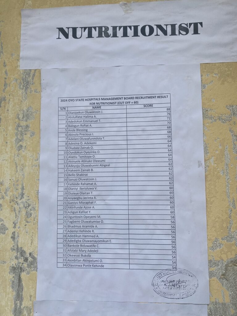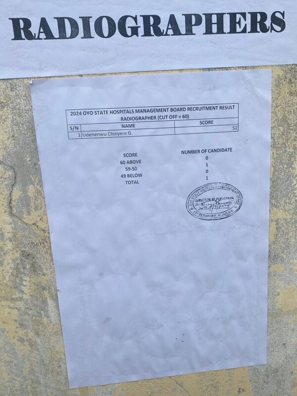 Applicants are advised to check the board’s social media handles for further updates. The results have also been posted on the OYSHMB’s notice board at the State Secretariat, Agodi, Ibadan.