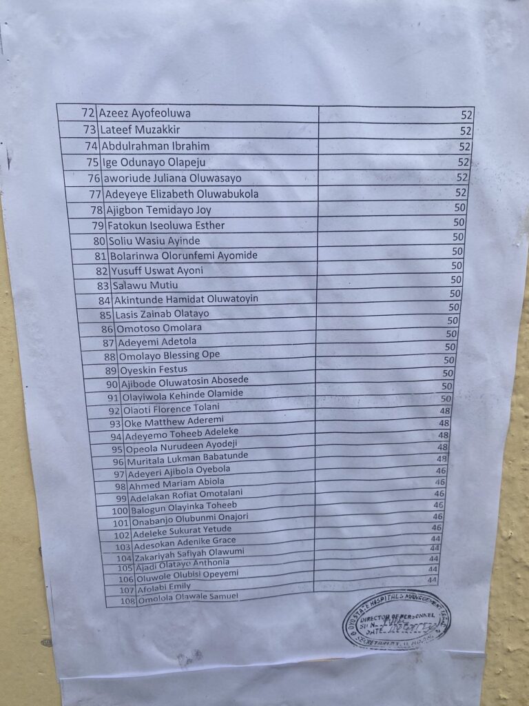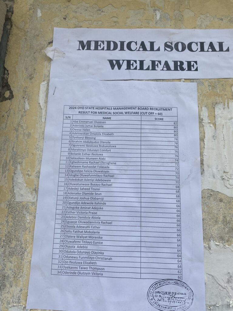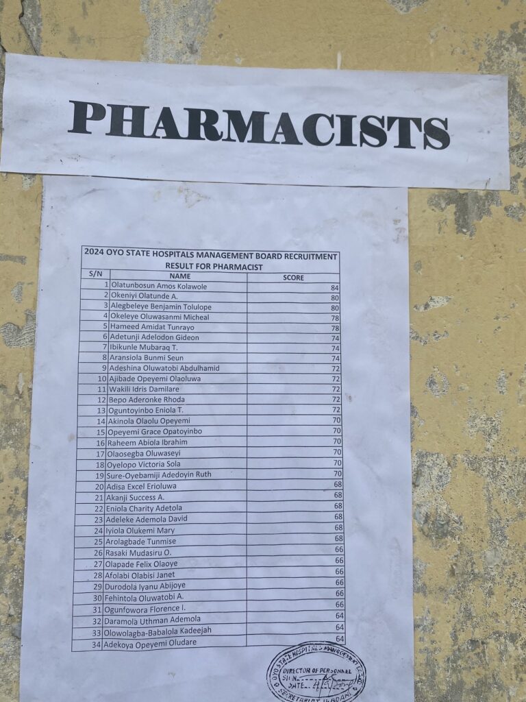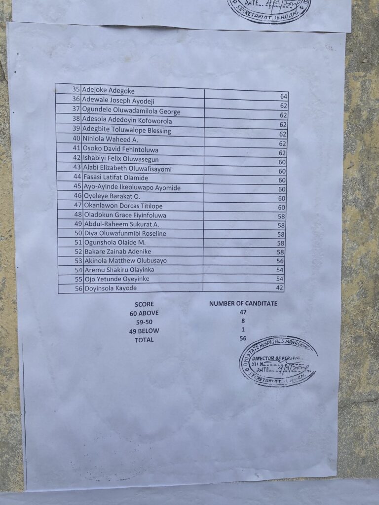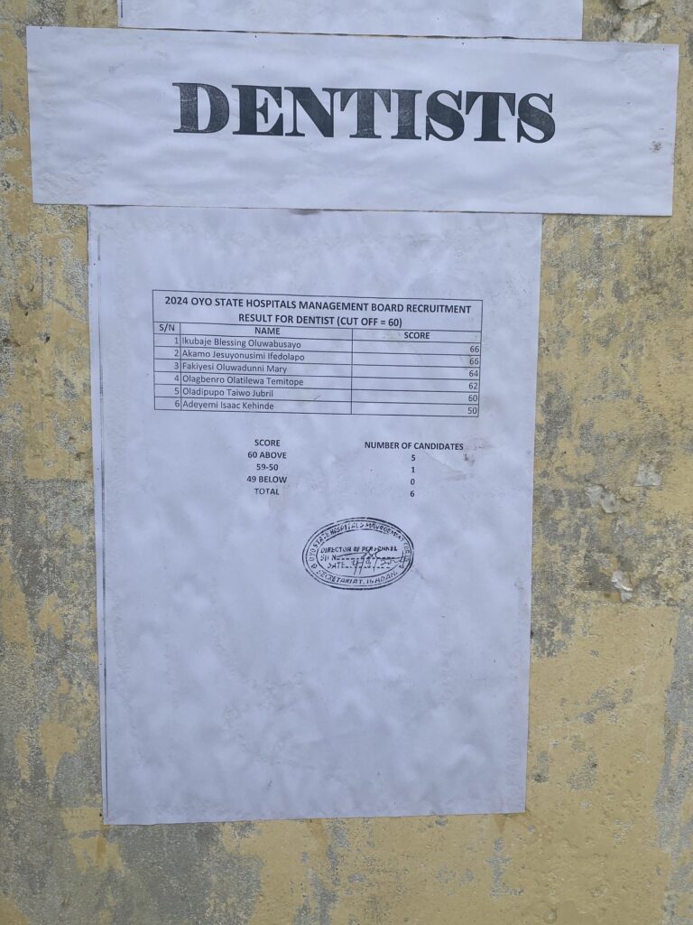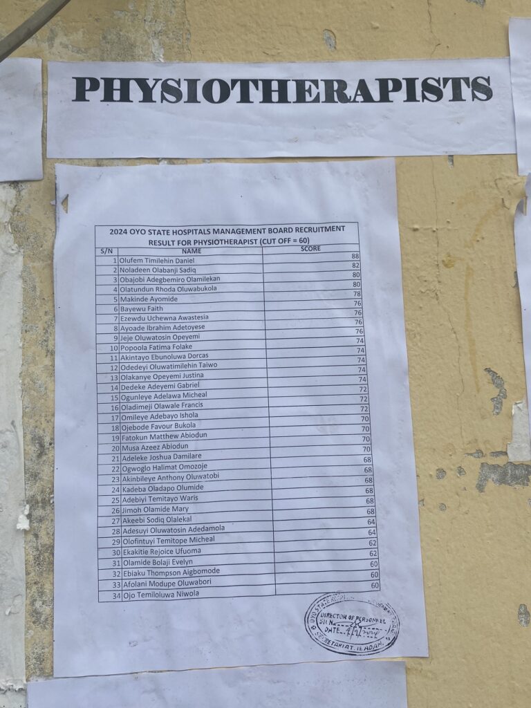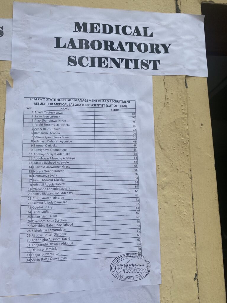 The Oyo State government has released the results of the multiple-choice questions (MCQ) examination conducted in August, according to Dr Akin Fagbemi, Chairman of the Oyo State Hospitals Management Board (OYSHMB).