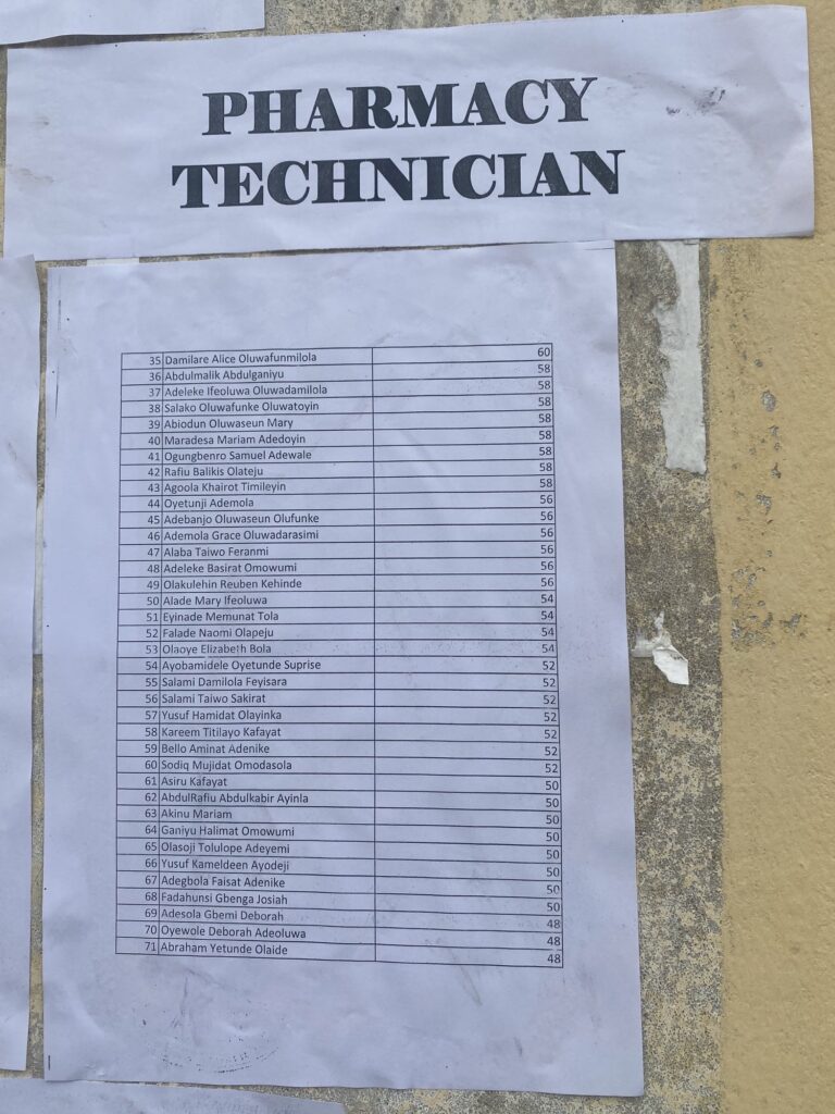 CANDIDATES RESULT -PHARMACY TECHNICIAN