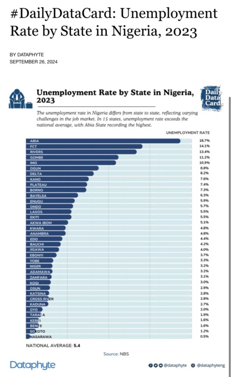 Nigeria faces various economic challenges, including unemployment, but some states have lower unemployment rates than the national average.