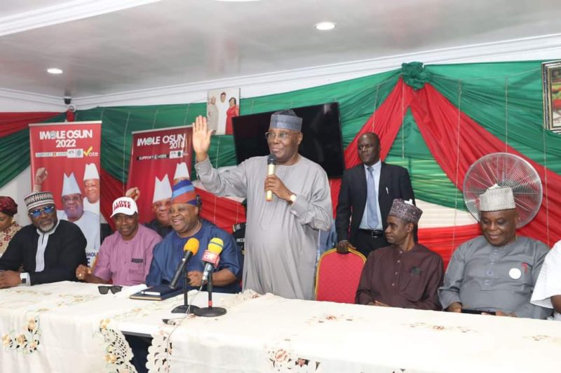 Earlier, Sen. Dino Melaye, introducing Atiku and his entourage, appealed to delegates from Osun not to be swayed by money bags during the party primary in Abuja.