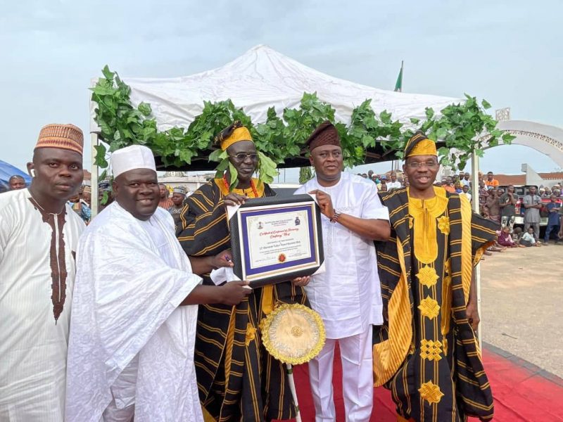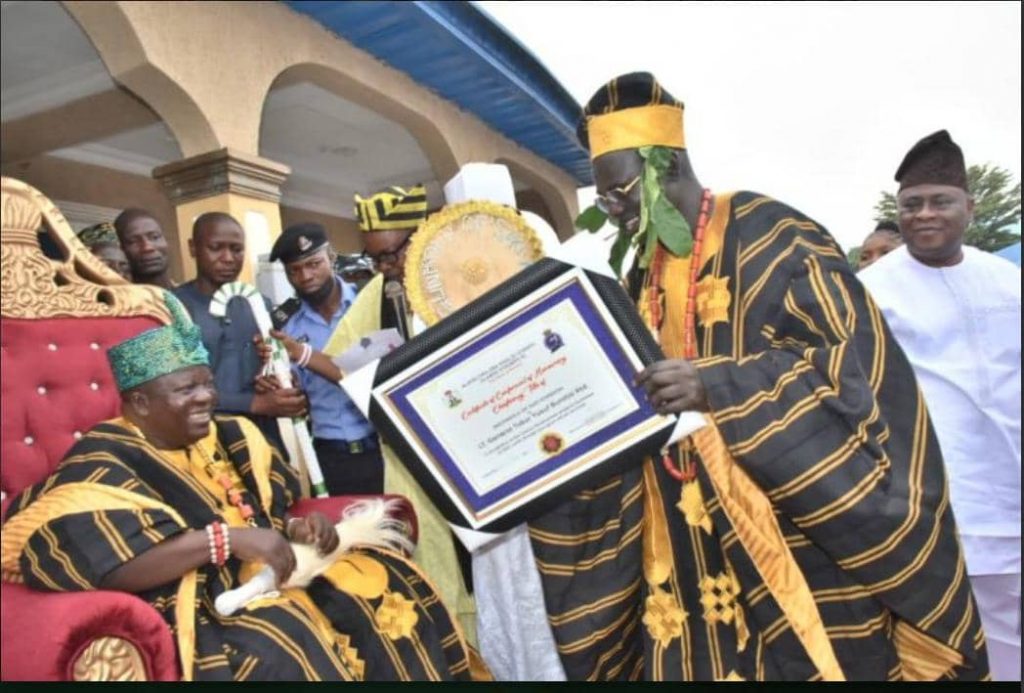 The Okere of Saki, Oba Surveyor Dr. Khalid Olabisi, conferred the honorary chieftaincy on him on Saturday in Saki.
