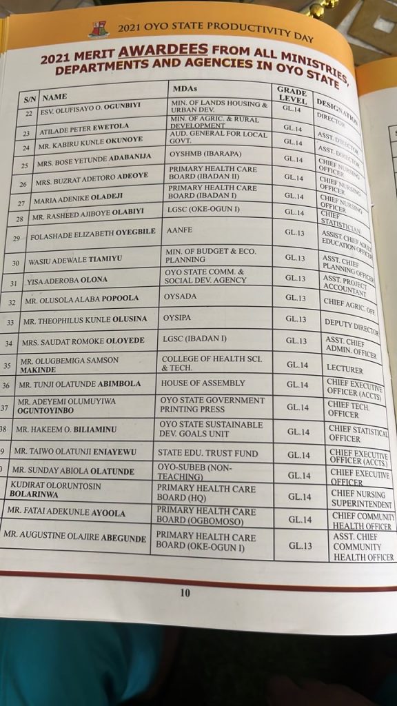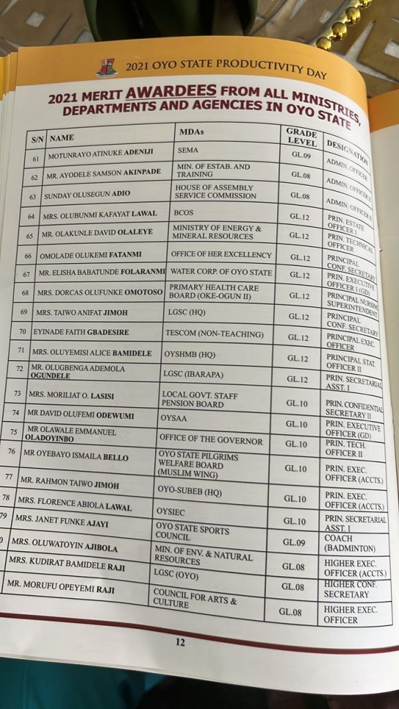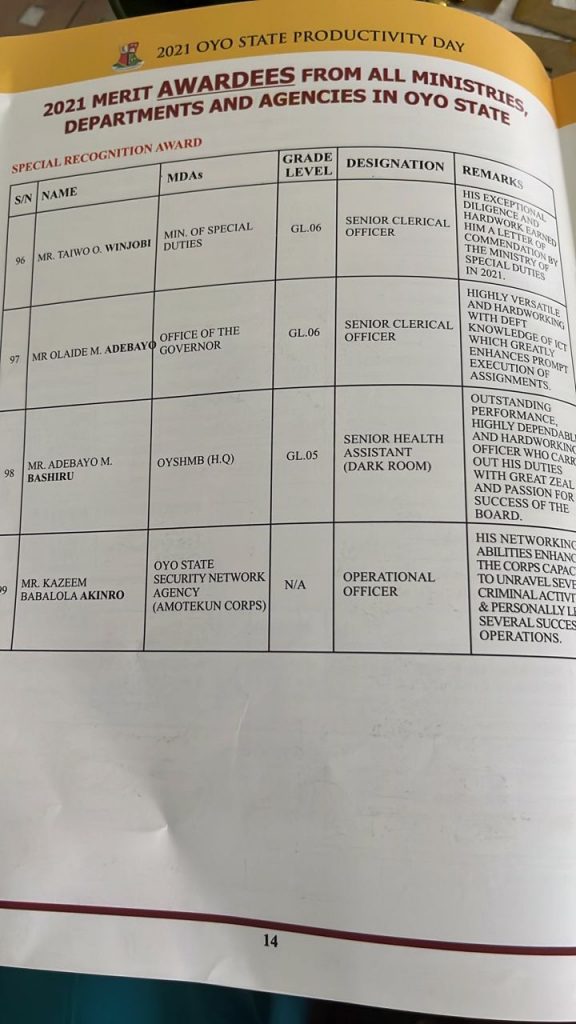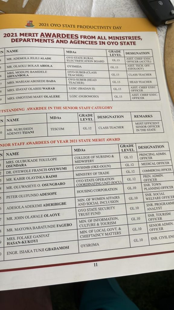 In the meantime, about 98 others from all ministries, departments and agencies in Oyo State were also given special recognition award.