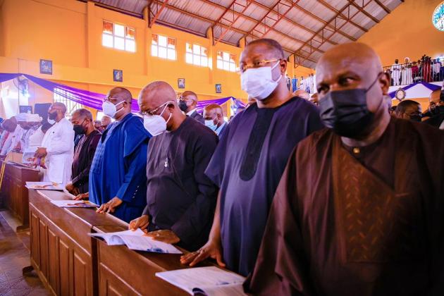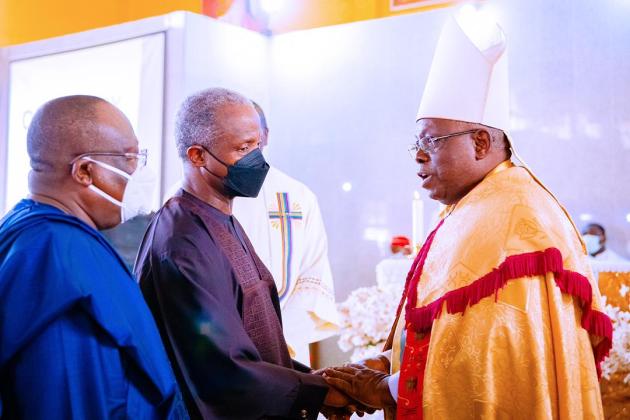 The Vice-President of Nigeria, Yemi Osinbajo; the Senate President, Ahmed Lawan; Oyo Deputy Governor, Aderemi Olaniyan had today attended the final burial of Angela Folarin, the wife of a three-term Senator representing Oyo Central, Teslim Folarin.