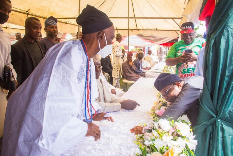 The former governorship aspirant on the platform of the APC, who has been pencilled down as the PDP candidate for Oyo South Senatorial election, was the cynosure of all eyes as everybody tried to catch a glimpse of the Ibadan Mogaji.