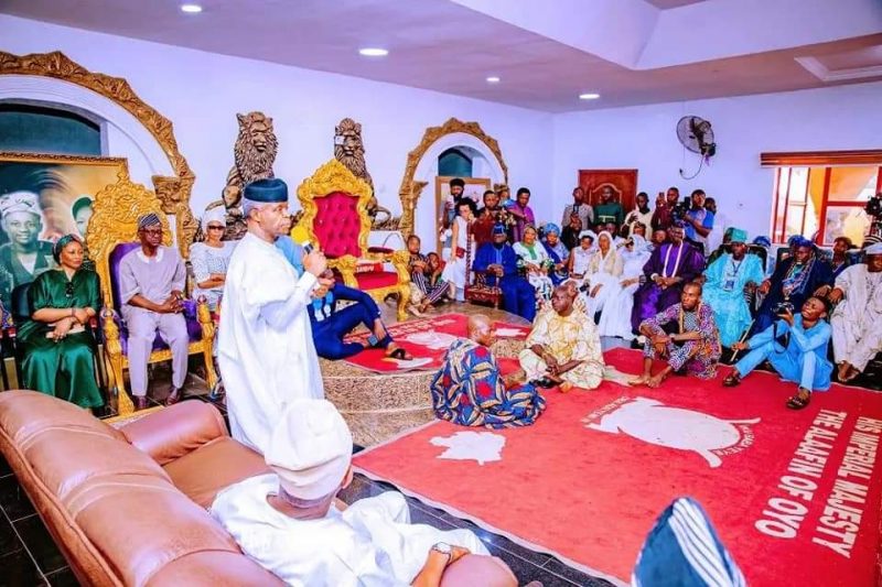 The Vice-President of the Federal Republic of Nigeria and Presidential aspirant under the All Progressives Congress, Professor Yemi Osinbajo earlier today paid a condolence visit to the family of the late Alaafin of Oyo, Oba Lamidi Adeyemi III, members of the Oyomesi and other chiefs on the passing of the departed Alaafin.