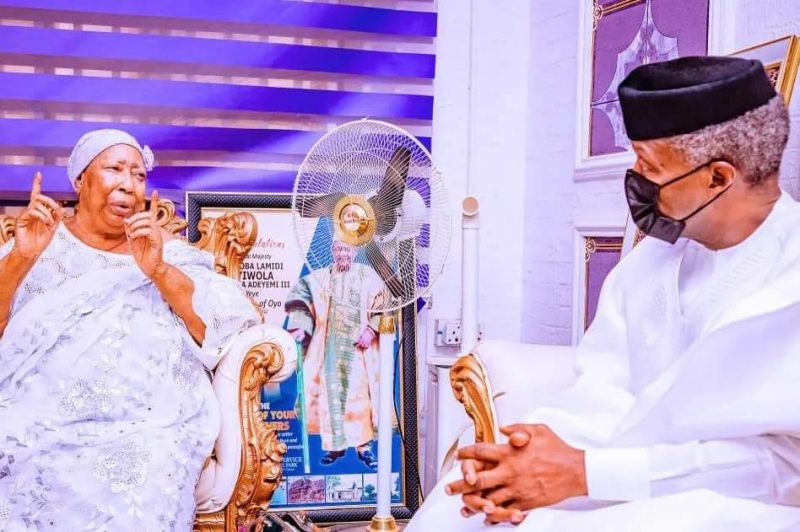 Speaking during his visit, Osinbajo mourned th first class monarch saying he was a mould of a philosopher king who understood the place of the correct representation of the history, heritage and political economy of a people in imbuing self-worth and self-esteem in the people.