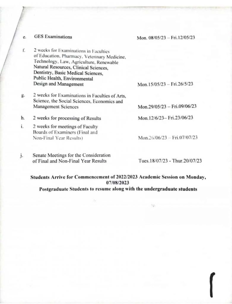 With the proposed revised calendar, UI students will commence first semester examinations on January 16, 2023 and end on January 30, 2023.