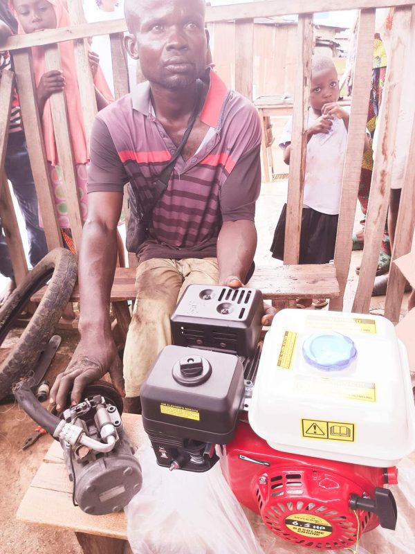 A new set of vulcanising machines were also donated to the Modakeke-born genius, who lives in Ibadan.