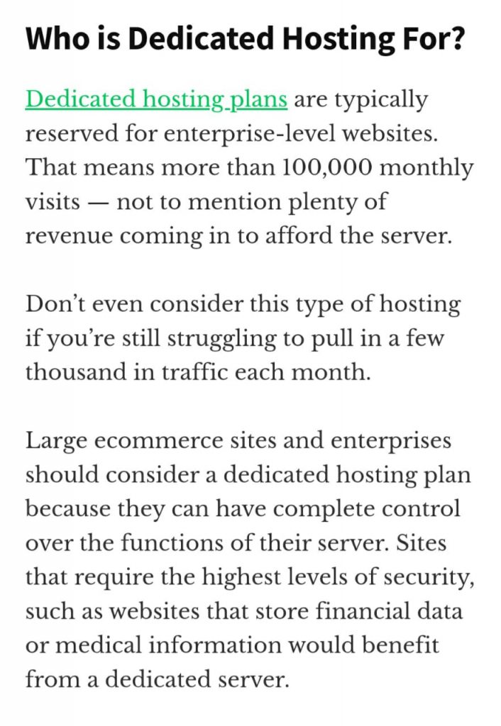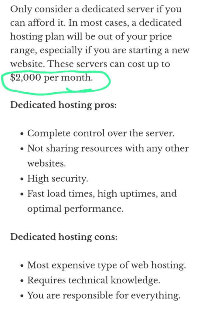 As mentioned in one of the images, this type of hosting is the best but comes with a catch, it is the most expensive! How expensive?