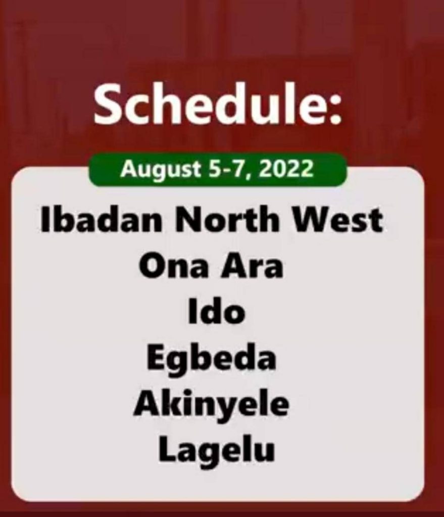 The exercise is intended to cover residences and commercial operations in the 11 local government areas of Ibadan, which are include: Ibadan North, Ibadan North-East, Ibadan North-West, Ibadan South-East, Ibadan South-West, Akinyele, Egbeda, Ido, Lagelu, Ona Ara and Oluyole